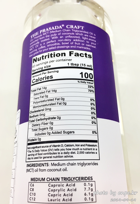 프라사다 엠씨티 오일(PRASADA COCONUT MCT OIL). 가격은 20,990원.