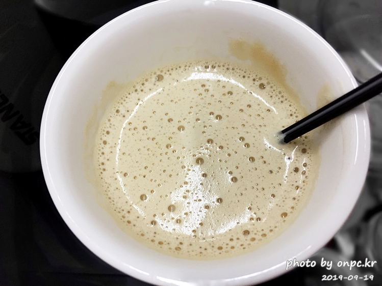 만약 전동 거품기가 있다면 사용해주는 것도 좋아요. 거품이 풍성해지니 커피도 부드러워지긴 해요.