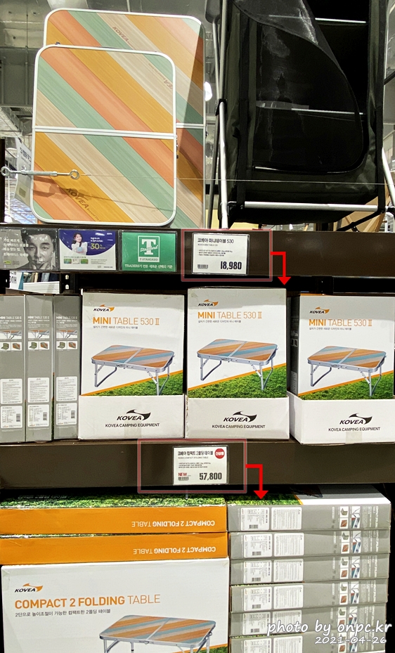 (위) 코베아 미니 테이블 530(KOVEA MINI TABLE 530). 가격은 18,980원.