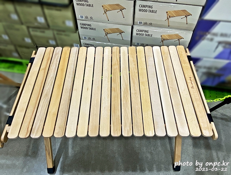 캠핑 원목 롤 테이블(CAMPING WOOD ROLL TABLE). 가격은 99,800원.