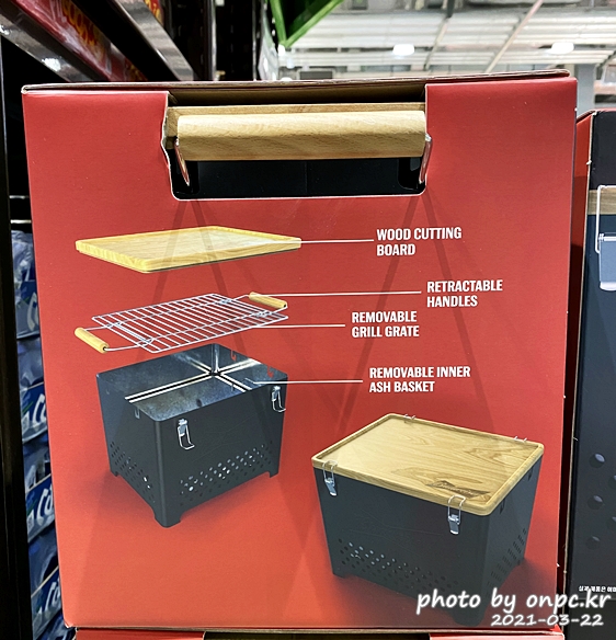 나무 도마, 쿠킹 그릴, 숯통, 보조 박스로 구성. 바비큐 숯통에 맥주가 들어있어요~ 한정 판매라서 아직 남아있을지 모르겠네요~