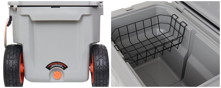 사이즈: 68 x 66 x 93cm / 그릴 지름: 57cm / 이동식 바퀴 및 하단 선반이 있어 이동, 조리 시 편리 / 재 받이가 있어 후 정리가 간편