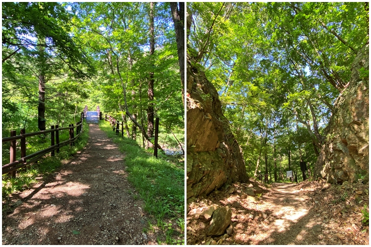 좌우로 계곡물이 흐르고 큰 바위 사이로 지나가는 길~