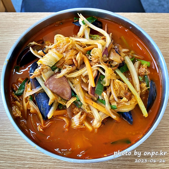 해물도 푸짐하고 국물이 깔끔하면서 진하고 매콤한 불고추짬뽕이에요.