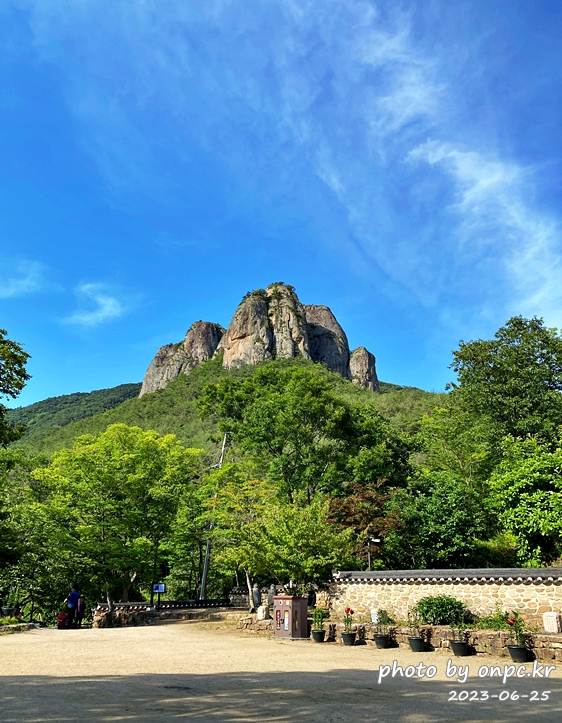 주왕산 내려와서 대전사에서 바라다본 주왕산 바위 봉우리~ 날씨도 좋고 역시 최고입니다.