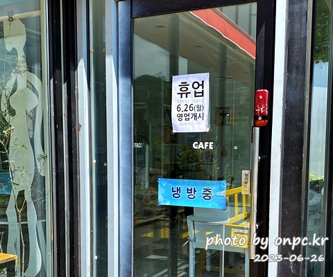 퇴실하면서 커피 마시러 갔더니 가맹점 해지로 며칠 휴업한다는 쪽지가 붙었어요.